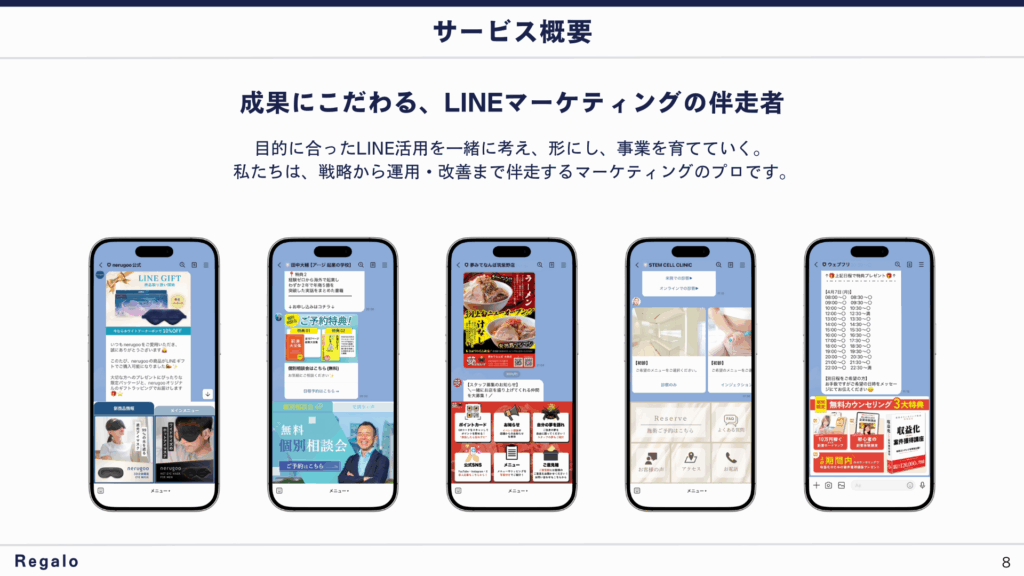 株式会社Regalo代表取締役の古河がLINEの活用事例や実績について解説しています。