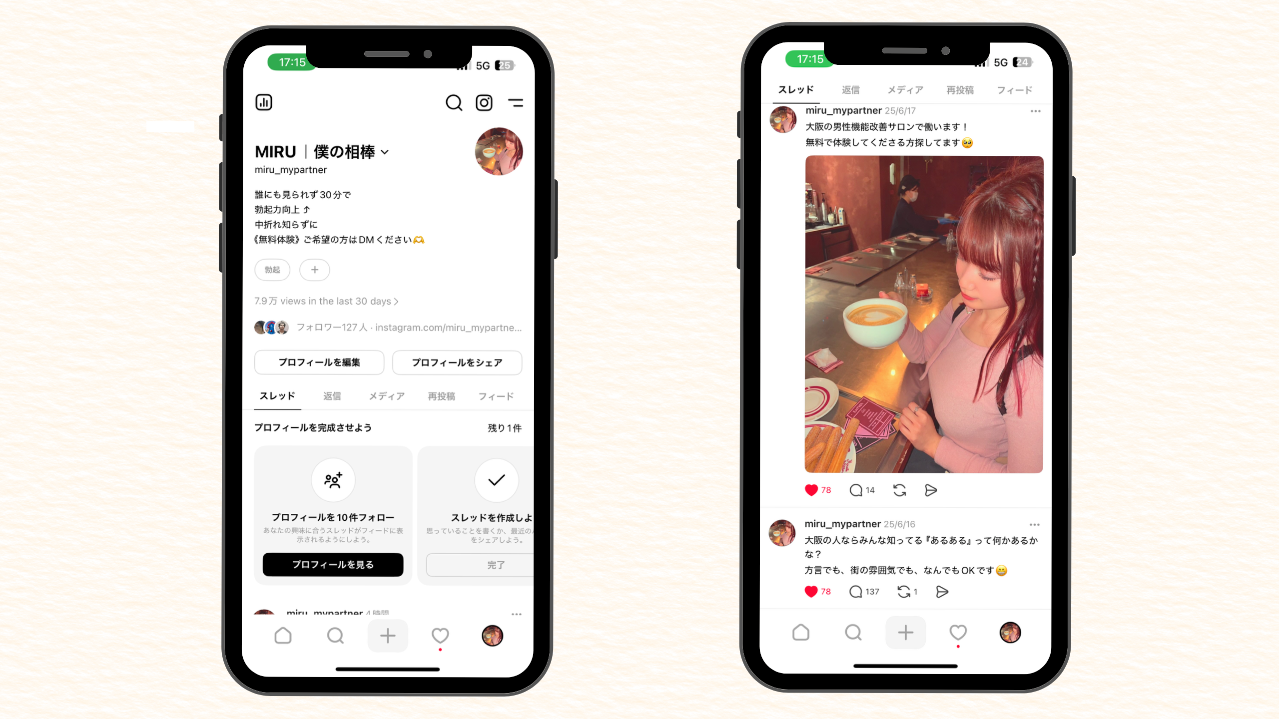 メンズヘルスケアサロン様の導入事例 2025 9/16 導入事例 2025年9月16日2025年9月17日 導入前の課題 広告、HPからの無料体験申込数は月で10~15件程 導入後の効果 運用開始後、約2週間で31件の来店予約獲得 総閲覧数79,000回以上、反応数1048件 連携しているInstagramのDMに「興味あり」とのメッセージが1ヶ月で141件 \ 他の事例に関してもまとめてます! / 資料ダウンロード 導入事例 Threads ホワイトニングサロン様の導入事例 ヘッドスパサロン様の導入事例